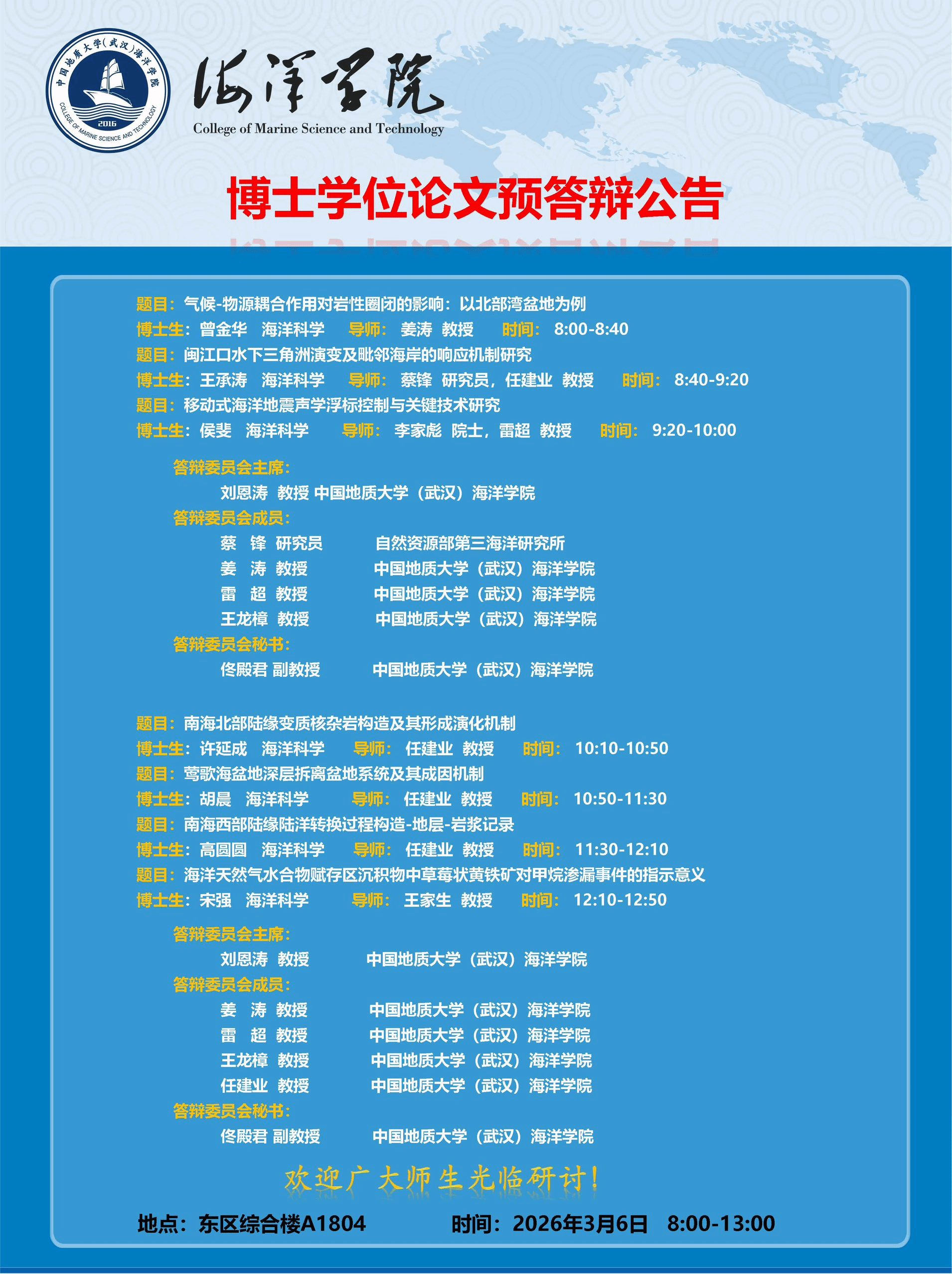 关于2026年春博士学位论文预答辩公告(3月6日)