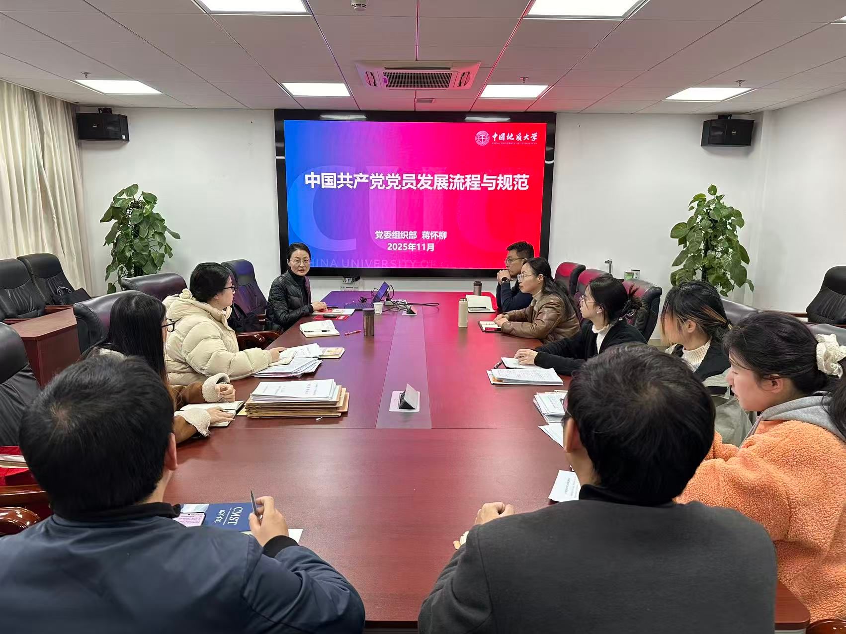 为进一步规范发展党员工作流程,提升党务工作者业务能力,严把党员“入口关”,2025年12月10日,英国上市公司官网365举行党务工作讨论会。党委组织部正处级专职组织员蒋怀柳到学院指导工作。学院党委书记刘国华、党委副书记钟苹、团委书记陈波、组织秘书韩瑞以及学院各师生党支部书记参会学习。