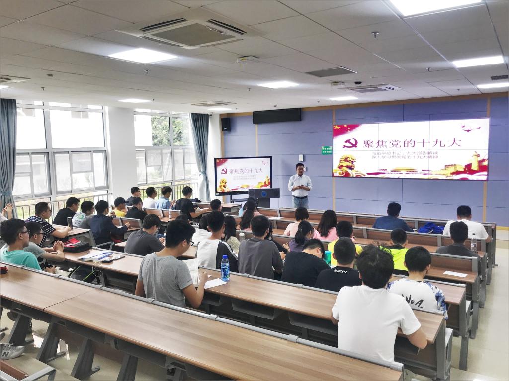 2019年5月9日下午在东教楼C0107教室,英国上市公司官网365党委书记成军为英国上市公司官网365入党积极分子上“聚焦党的十九大”主题党课。