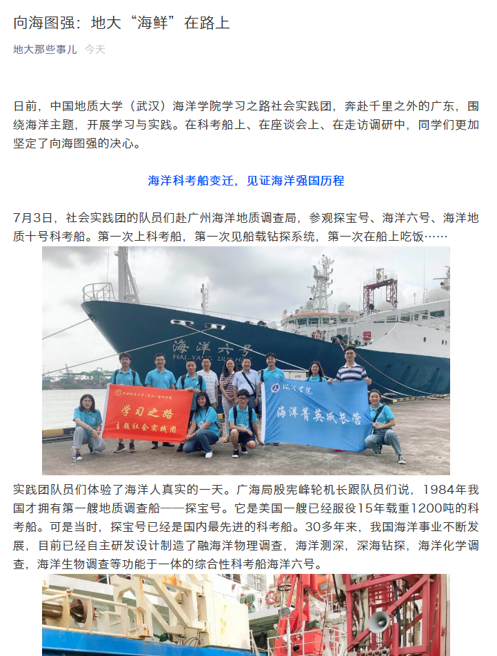 地大党委宣传部官方公众号“地大那些事儿”长篇幅报道我们暑期社会实践。
