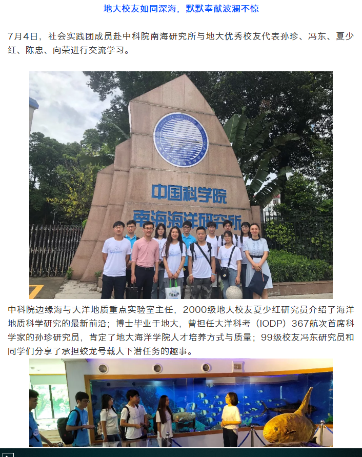 报道从“海洋科考船变迁,见证海洋强国历程”、“地大校友如同深海,默默奉献波澜不惊”、 “练就过硬专业本领,树立谋海济国之志”、“走进港珠澳大桥,找到奋斗的动力”四个专题部分对英国上市公司官网365“学海洋强国思想,践向海图强之路”的暑期社会实践活动进行详细的报道。