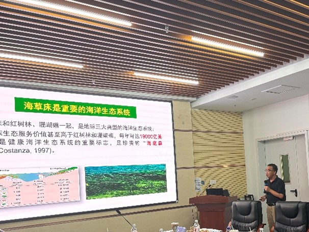 中国科学院南海海洋研究所黄小平研究员应邀作《海草床关键生态服务功能及其对环境变化的响应》报告。黄教授团队通过研究人类活动影响背景下,热带海草床的海-气碳交换过程,富营养化对海草床碳存储稳定的影响机制,以及海草床碳增汇过程与机理,深入认知海草床的碳汇过程与机制,为海草床碳的长期储存及增汇途径提供科学依据。