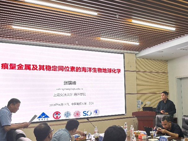 上海交通大学张瑞峰教授应邀作《痕量金属及其稳定同位素的海洋生物地球化学》报告。张瑞峰教授表示海水中的痕量金属,例如铁、锌和镉等,不仅参与了海洋浮游植物重要的生命活动,还与海洋中其他元素的生物地球化学过程紧密相关。这些痕量元素的生物地球化学循环不仅可以影响海洋生态系统和渔业资源,还可以通过影响海洋碳氮循环而作用于全球气候。张教授表示物质跨界面输送的过程和通量,是研究痕量金属生物地球化学的关键内容,他通过研究跨越河口、近岸界面过程痕量金属及其稳定同位素示踪,阐述了痕量金属及其同位素跨珠江口行为和痕量金属在黄东海的生物地球化学行为。紧接着,他通过对气候变化背景下冰川融水痕量金属的海向输送研究,发现了风化和极地绿化对冰川融水中痕量金属的影响。最后他通过元素计量和培养试验评估痕量金属的生态效应。