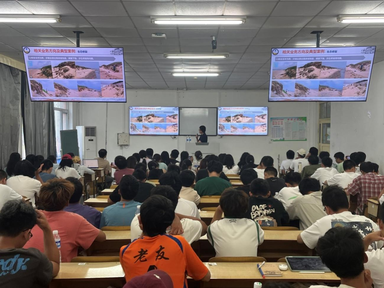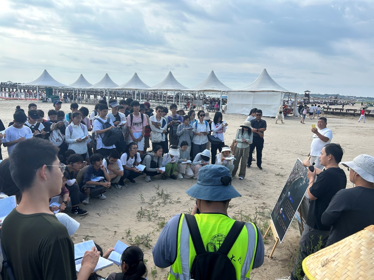 二是教学手段丰富。针对各实习路线和相关的地质现象与知识点,教师们精心准备了展板,以便学生更直观地掌握相关教学内容。实习期间,河北省海洋地质资源调查中心张甲波总工程师和我们王家生教授应邀为我们师生做专题报告,进一步深化和拓展了野外教学内容。河北省海洋地质资源调查中心王琰高级工程师在浅水湾浴场现场为我们师生介绍海岸带修复技术及效果。