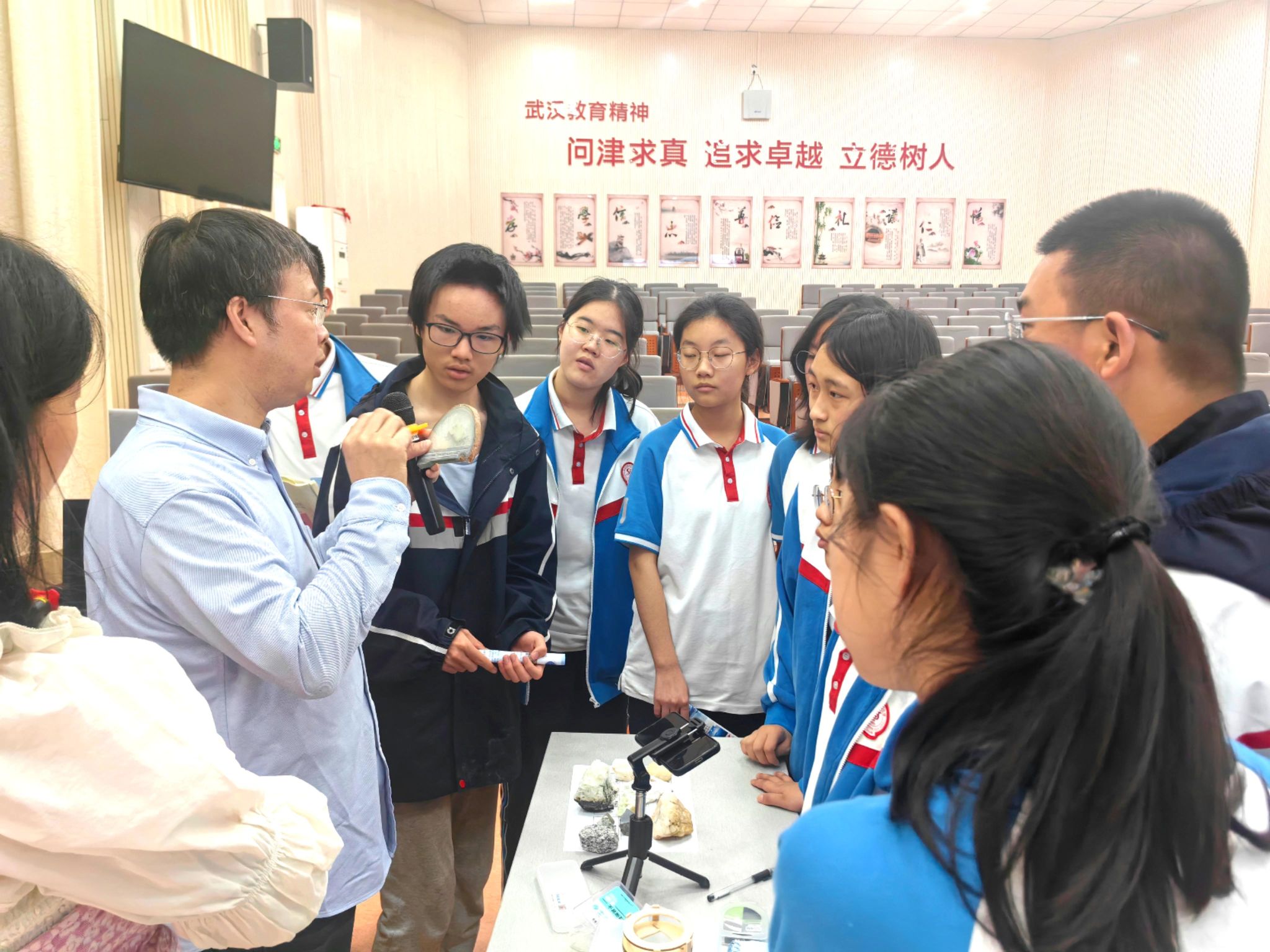 在张之洞先生'经国济世'的办学精神传承地,在李四光校友曾求知的教室里讲述地质故事,是与历史的隔空对话,是对科学精神的传承和发扬。