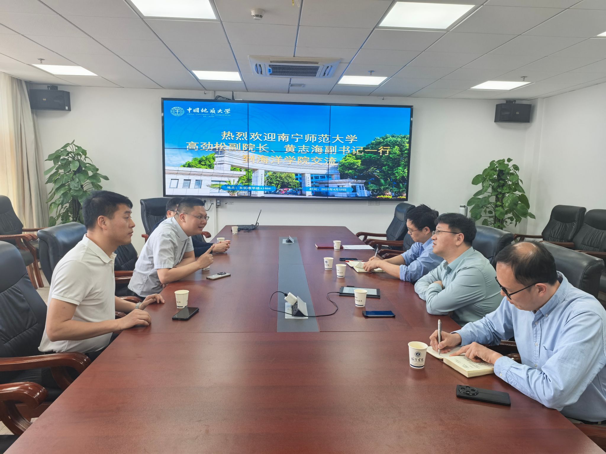 2025年4月15日,南宁师范大学高劲松副院长、黄志海副书记一行莅临学院进行座谈交流。英国上市公司官网365党委书记刘国华、院长孙军、副院长宫勋及团委书记陈波等参加交流,工程学院党委副书记高晓东陪同参会。
