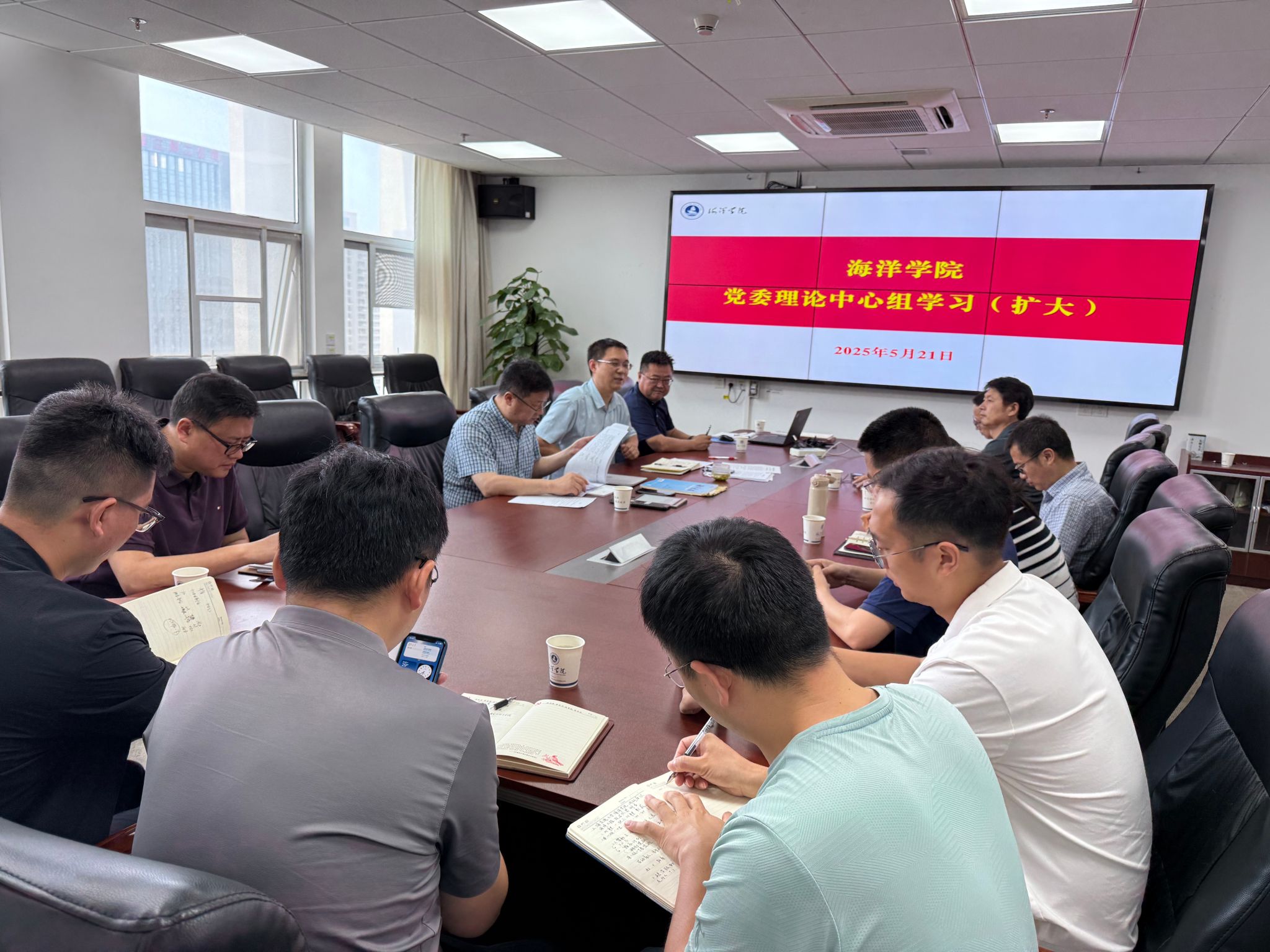 (通讯员 韩瑞)5月21日上午,为深入学习贯彻上级有关政策和精神,学院党委书记刘国华主持召开党委理论学习中心组学习扩大会,党委理论学习中心组成员、学科带头人、各系党支部书记、各系主任和副主任、院直工作人员参加学习。