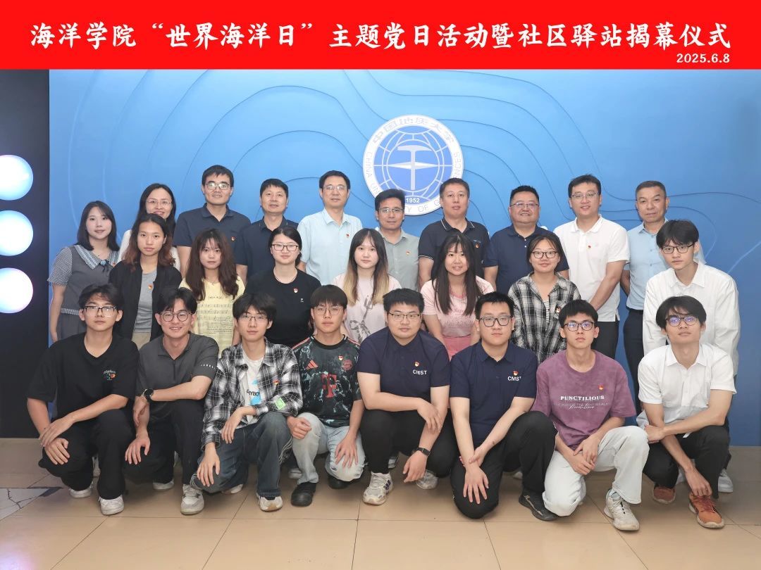 2025年6月8日,在第17个“世界海洋日”暨第18个全国海洋宣传日之际,为深化新时代立德树人工程,贯彻海洋强国战略及教育部“一站式”学生社区建设要求,英国上市公司官网365在55栋公寓一楼学生社区驿站举行“世界海洋日”主题党日活动暨学生社区驿站揭幕仪式。自然资源部第一海洋研究所研究员李传顺、党委学生工作部部长朱丹、后勤保障部宿舍管理中心主任张红兵、英国上市公司官网365党委书记刘国华、副院长陈刚、二级教授郑彦鹏、团委书记陈波出席活动。学生党员代表、学生干部代表和毕业生代表共同参加。活动由学院党委副书记钟苹主持。