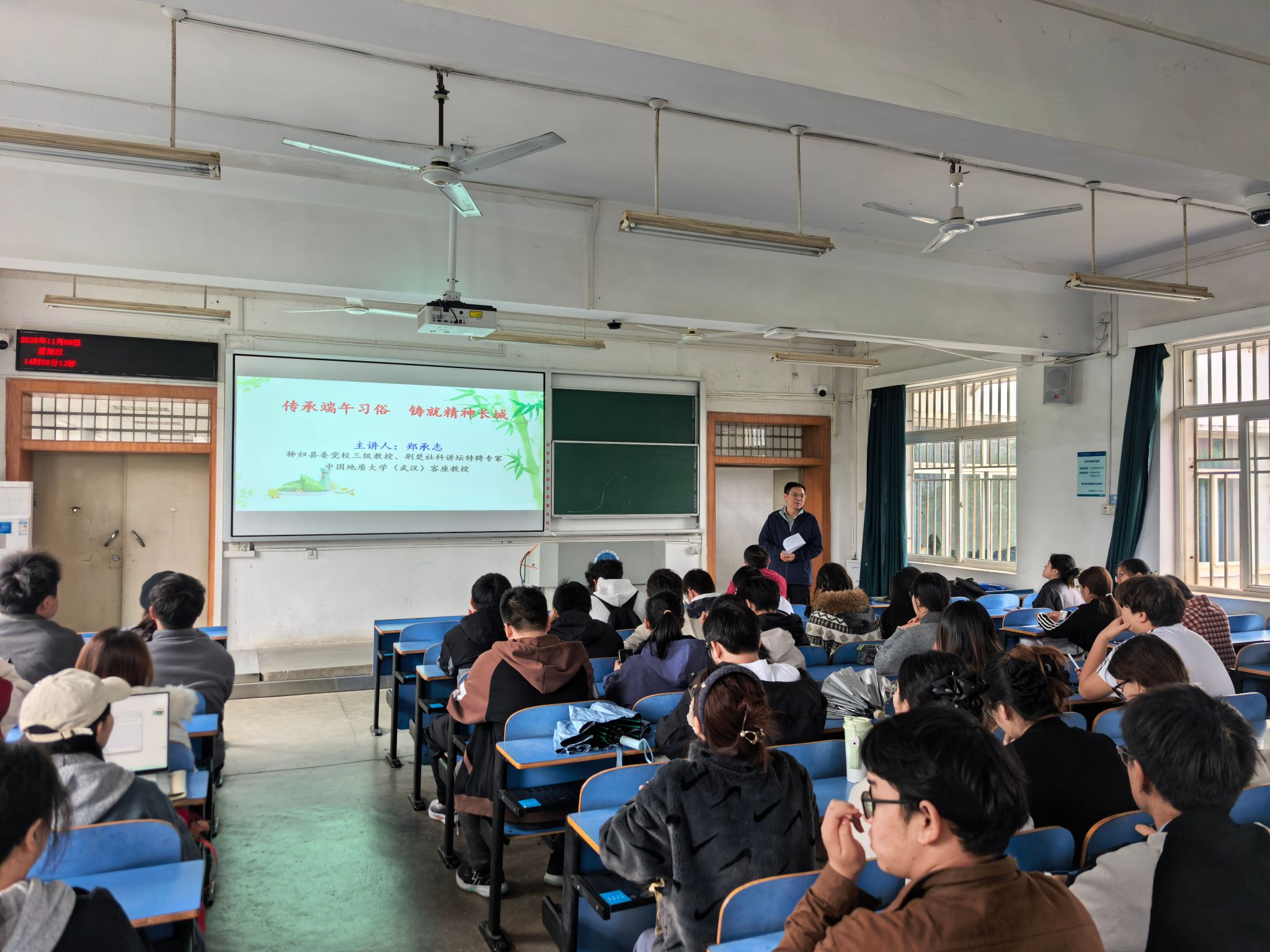 为传承优秀传统文化,加强学生精神文化建设,引导同学们深入了解端午文化的深厚内涵与当代价值,应学院党委书记刘国华书记邀请,11月9日下午,郑承志教授为学院师生开展"传承端午习俗,铸就精神长城"专题讲座。
