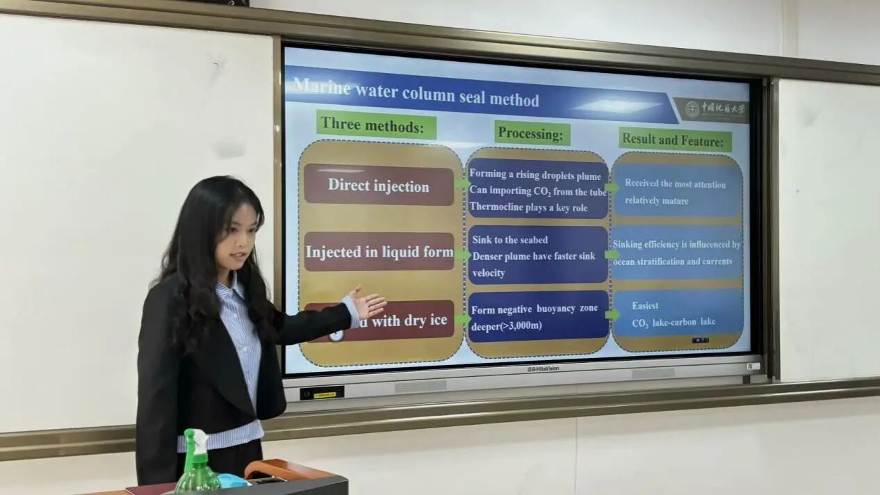 受到《海洋地质灾害》课程中老师讲述的“可燃冰”开采可能造成的海底滑坡地质风险的启发,她不断思考如何将风险降到最低,其中“置换开采”的方法给予她启发,这种能够同时实现天然气开采和碳封存的方法,对我国绿色能源技术创新意义重大。由此开始,她主动开展文献调研,加入老师的课题组,并借助学校第十七期“李四光计划”平台,在匡洋民副教授指导下制定个性化培养方案,开启了跨专业、系统化的科研学习之路。