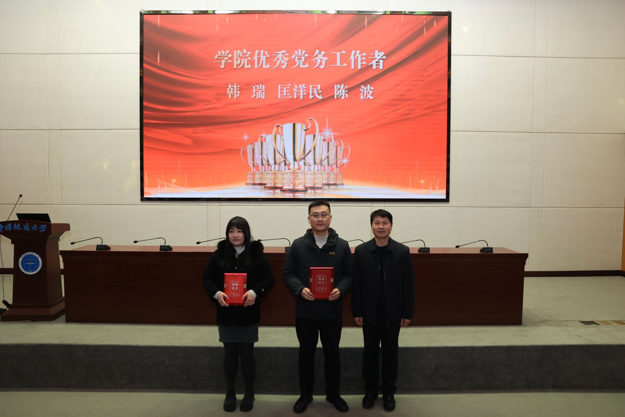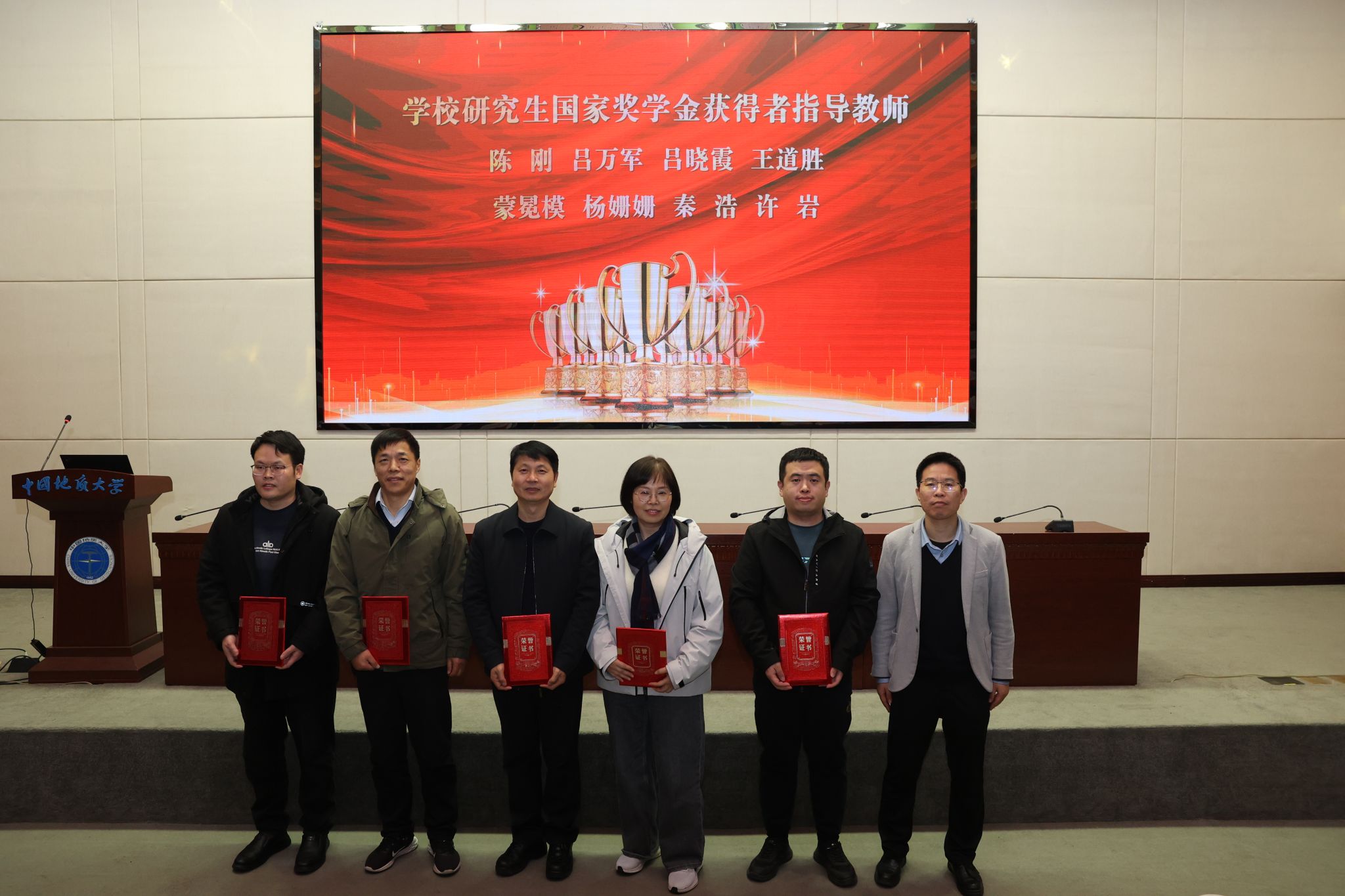 随后,胡守庚、郭秀蓉和刘国华、孙启良、陈刚、钟苹先后对39位教师予以不同类型的颁奖表彰。
